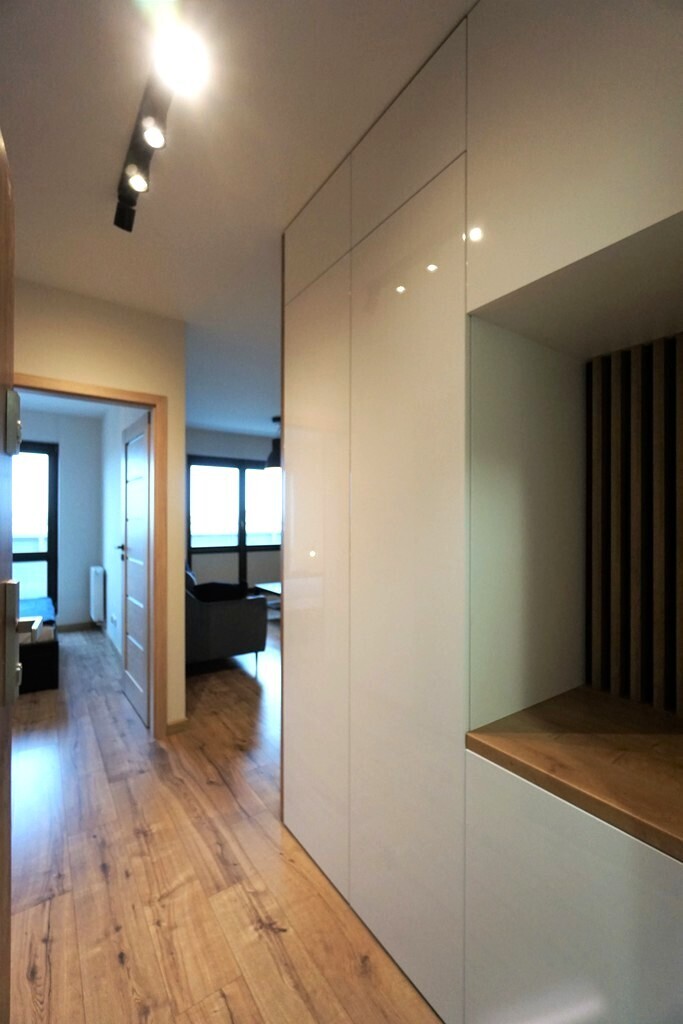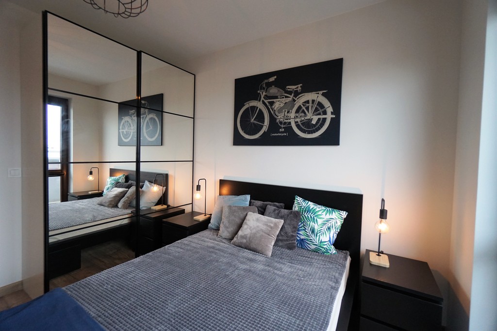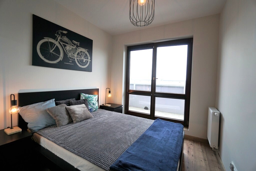 Mieszkanie jest nowe i umeblowane. W mieszkaniu znajduje się pralka, zmywarka, lodówka, piekarnik oraz telewizor. Do mieszkania przynależy wygodnie usytuowane miejsce postojowe.