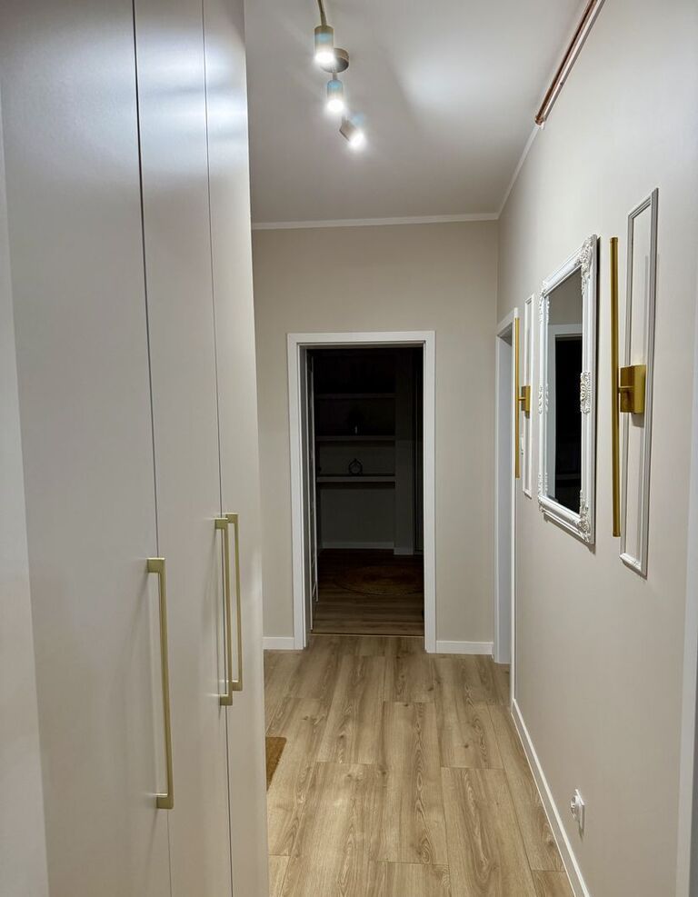 -Szeroki korytarz z dużą szafą na ubrania;