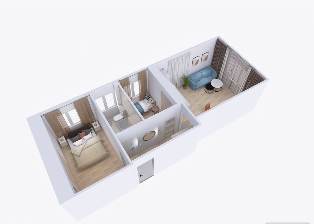 - Przestronny salon z aneksem kuchennym;