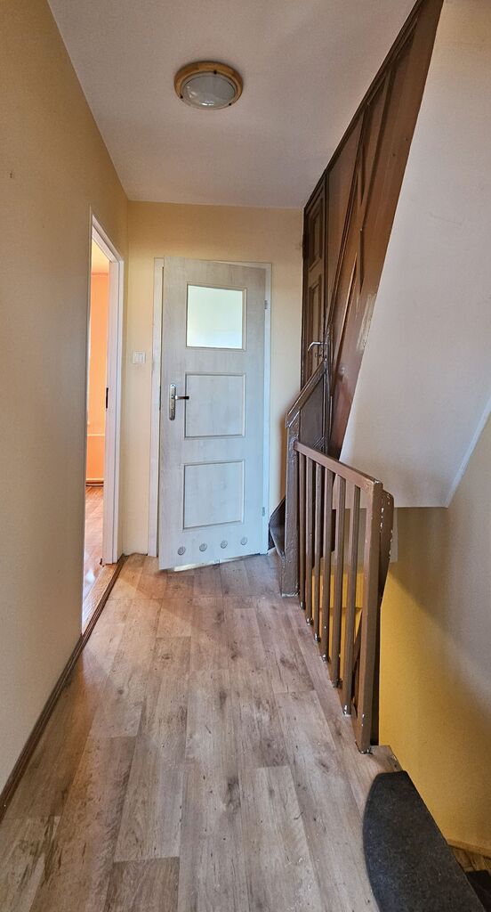 Przedmiotem oferty jest środkowy szeregowiec, położony na ul. Traugutta, tuż przed skrzyżowaniem z Mickiewicza. Dom wybudowany z cegły, ocieplony. Na dachu dachówka betonowa. Dużym atutem jest możliwość zaparkowania auta przed budynkiem oraz garaż na 1 samochód z kanałem i nową bramą wjazdową i garażową od drugiej strony działki. Wjazd drogą ppoż. Na parterze salon z kuchnią, małe wc oraz pokój. Na I piętrze 2 sypialnie i łazienka z oknem. Strych do własnej aranżacji. Pod budynkiem podpiwniczenie (51m2). Dom do lekkiego remontu. Ogrzewanie na gaz, ciepła woda z pieca gazowego lub elektrycznego.
