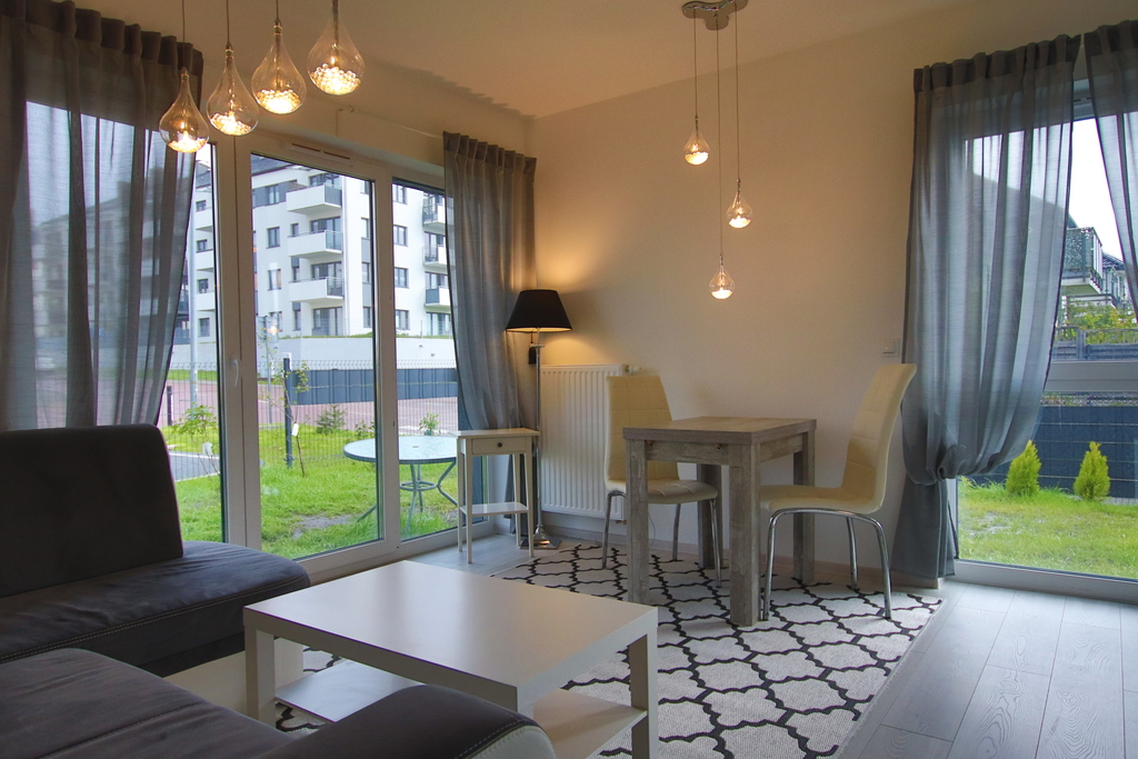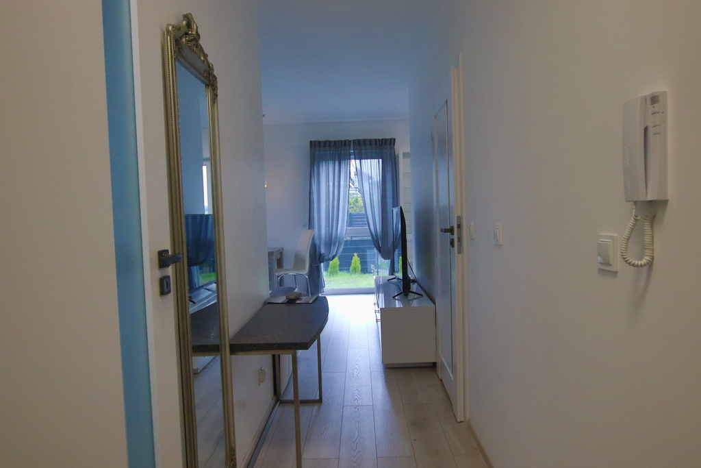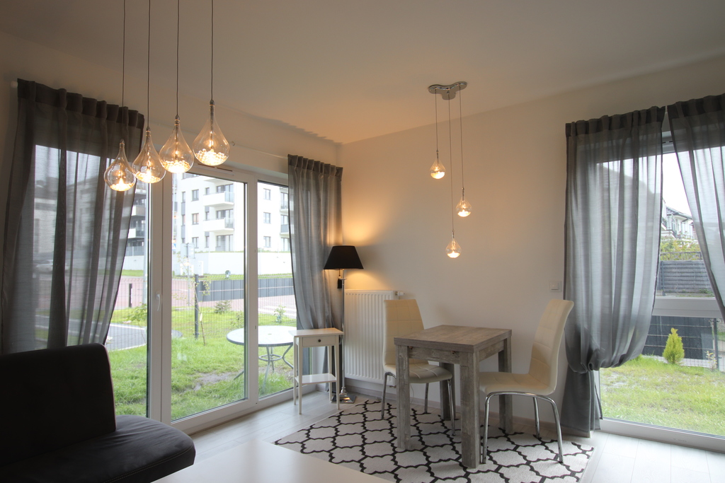 Niewątpliwym atutem mieszkania jest bezpośrednie wyjście z salonu do prywatnego ogrodu o powierzchni około 90 m² – idealnego miejsca do wypoczynku na świeżym powietrzu, aranżacji strefy rekreacyjnej czy organizowania spotkań towarzyskich.