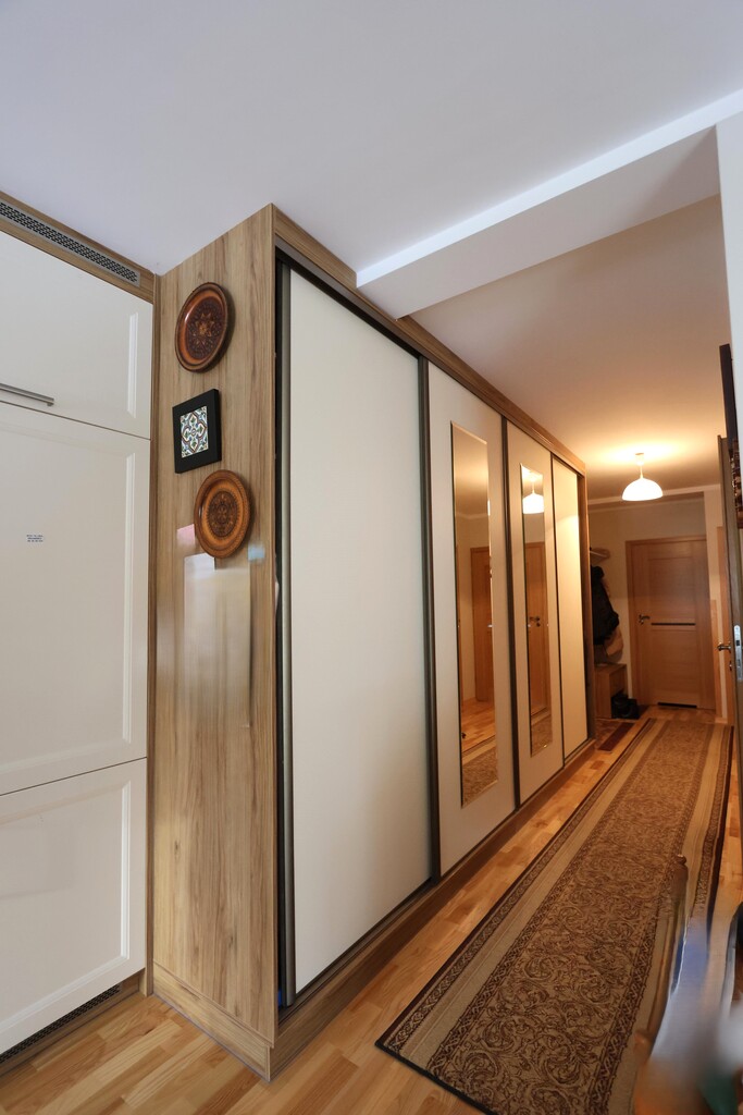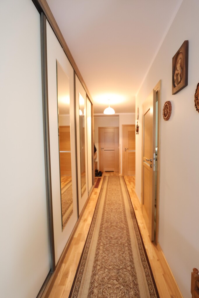 - przedpokój - na podłodze deska barlinecka, duża 4 skrzydłowa szafa w zabudowie z lustrami,