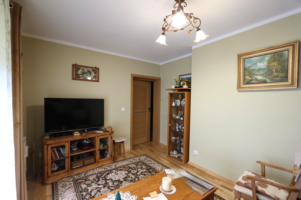 - salon - na podłodze deska barlinecka, wyjście na balkon,