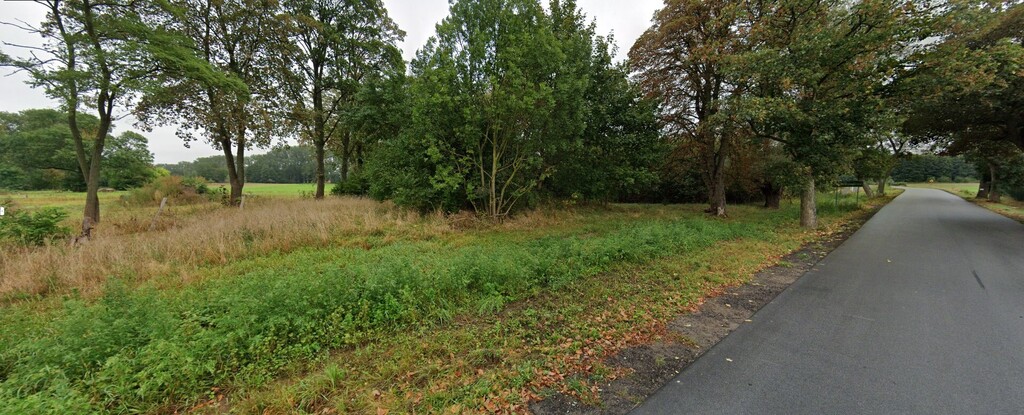 Wygląd: drzewa wzdłuż frontu działki, w głębi trawa i małe drzewka z możliwością wycinki wedle potrzeby