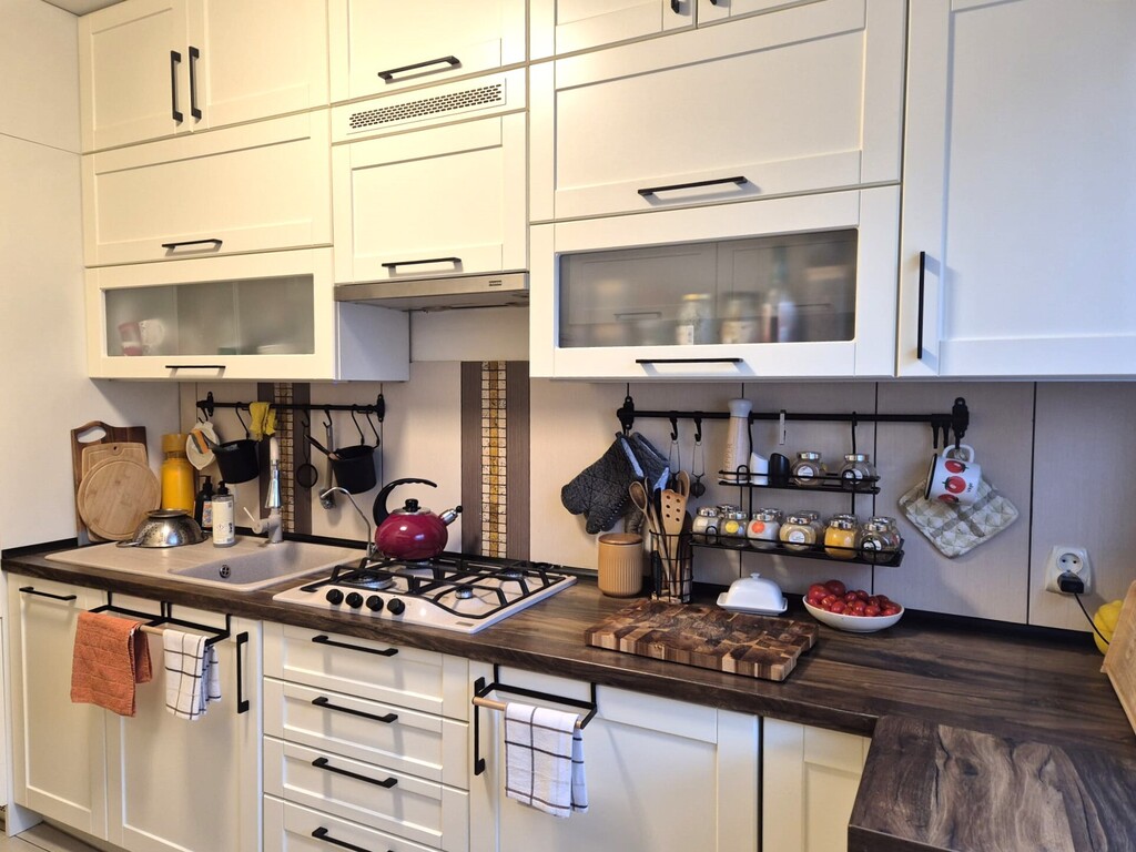 Kuchnia w pełni wyposażona : lodówka, zmywarka, piekarnik, kuchnia gazowa, meble na wymiar.