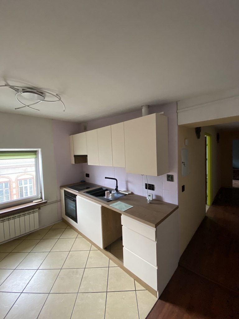 Dwupokojowe mieszkanie w kamienicy w centrum miasta. Salon z aneksem kuchennym (przejściowy), umeblowany w wypoczynek i komody, ponadto osobny pokój z łóżkiem (nie widać na zdjęciu), pokój kąpielowy z wc (11m2), przedpokój. Kuchnia umeblowana i częściowo wyposażona. Mieszkanie ma wymienioną instalację elektryczną, nowe piony wodne. Salon z aneksem kuchennym ma powierzchnię 32m2, a sypialnia ponad 12m2. Okna pcv, wysokość mieszkania od 2,2 do 2,44m. Elewacja po remoncie. Opłaty administracyjne w wysokości 600 pln zawierają zaliczkę na wodę w ilości 3,5m3. Ogrzewanie gazowe. Najem okazjonalny na min. rok czasu. Mieszkanie przyjazne zwierzętom. Dysponujemy kluczami. Opłaty wynoszą 2800 pln+czynsz administracyjny.