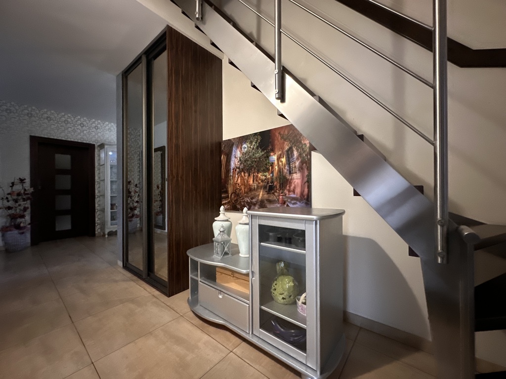 Dom parterowy z użytkowym poddaszem został zaprojektowany z myślą o maksymalnym komforcie mieszkańców i wykończony z materiałów najwyższej jakości. Powierzchnia użytkowa to 172.63 m2, a całkowita ok 200 m2.