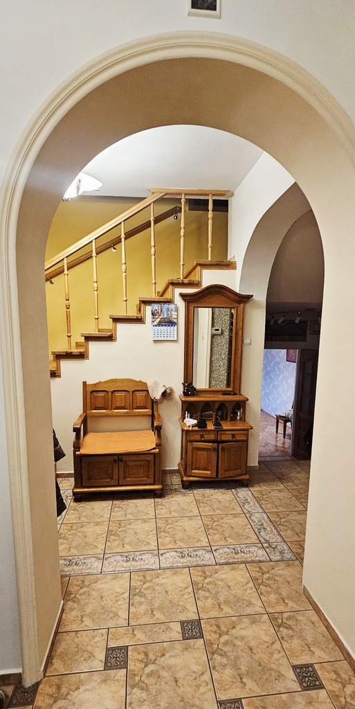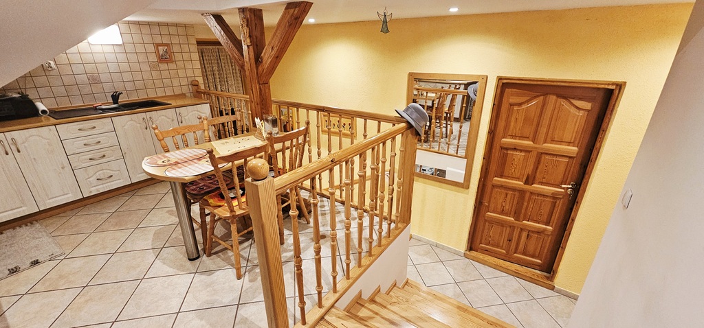 Na piętrze (piętro może stanowić oddzielne mieszkanie) znajdują się dwa bardzo przestronne pokoje, kuchnia oraz dwie łazienki z WC.