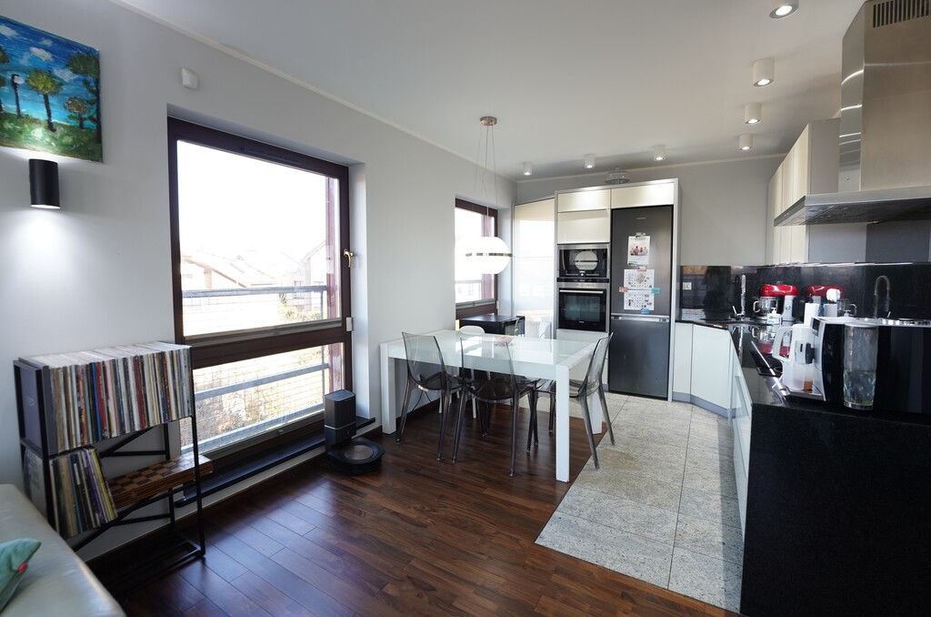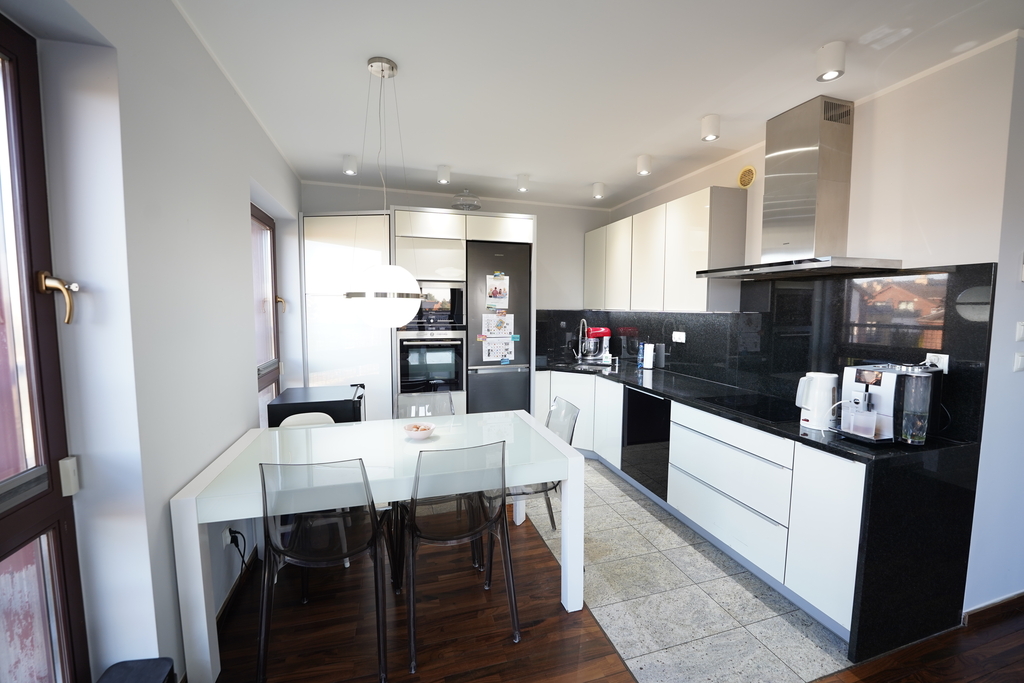 - widna kuchnia, meble w zabudowie wraz ze sprzętem AGD (lodówka, płyta indukcyjna, piekarnik, mikrofalówka, okap, zmywarka),
