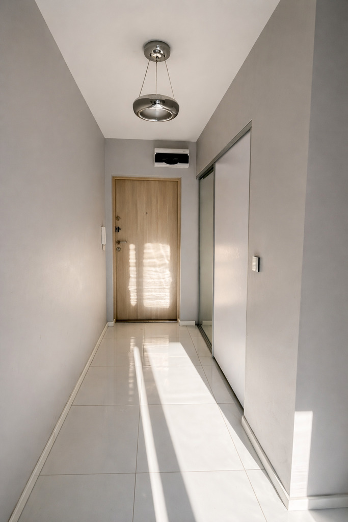 Na powierzchni 67,63 m² zaprojektowano przestrzeń, która od pierwszego wejścia robi wrażenie proporcjami i światłem. Południowo-wschodnia ekspozycja sprawia, że wnętrze jest jasne i przyjemne przez cały dzień, podkreślając starannie dobrane materiały i kolorystykę.