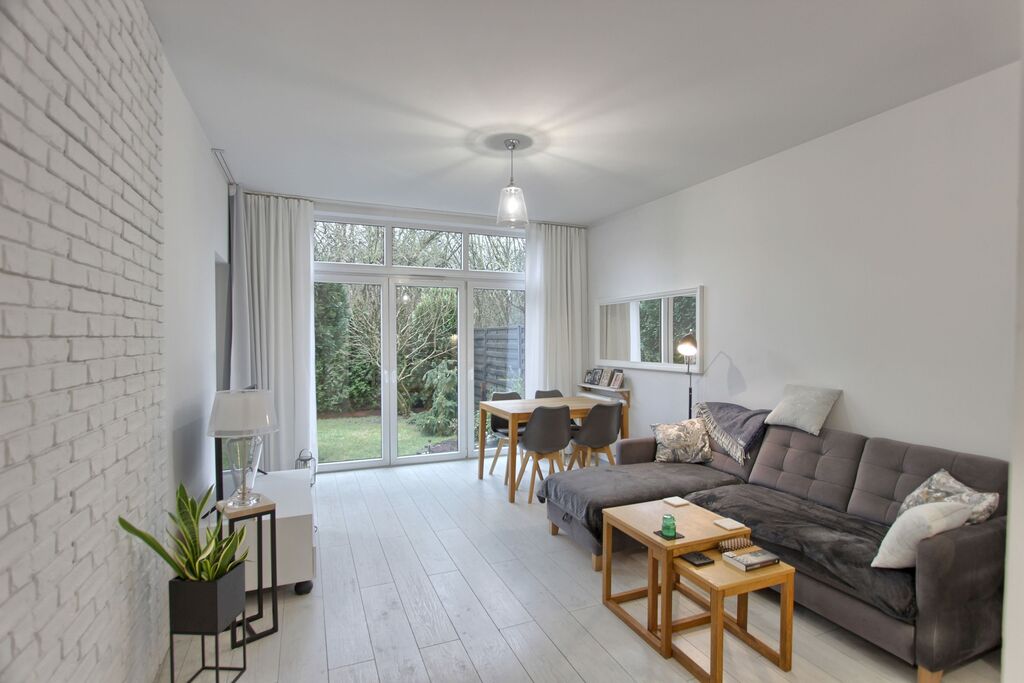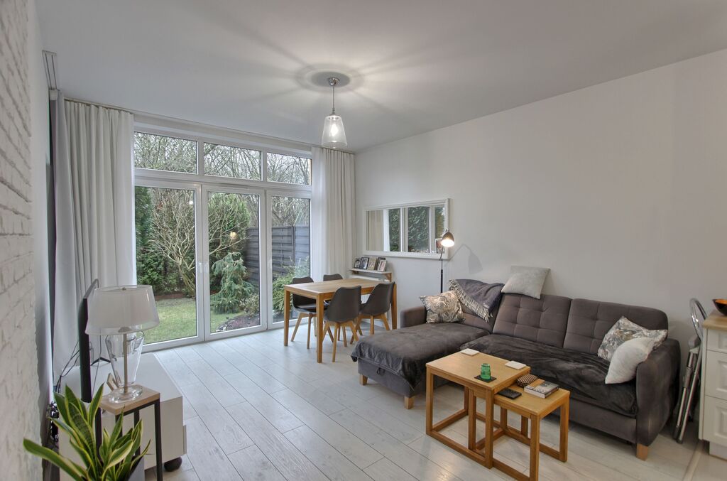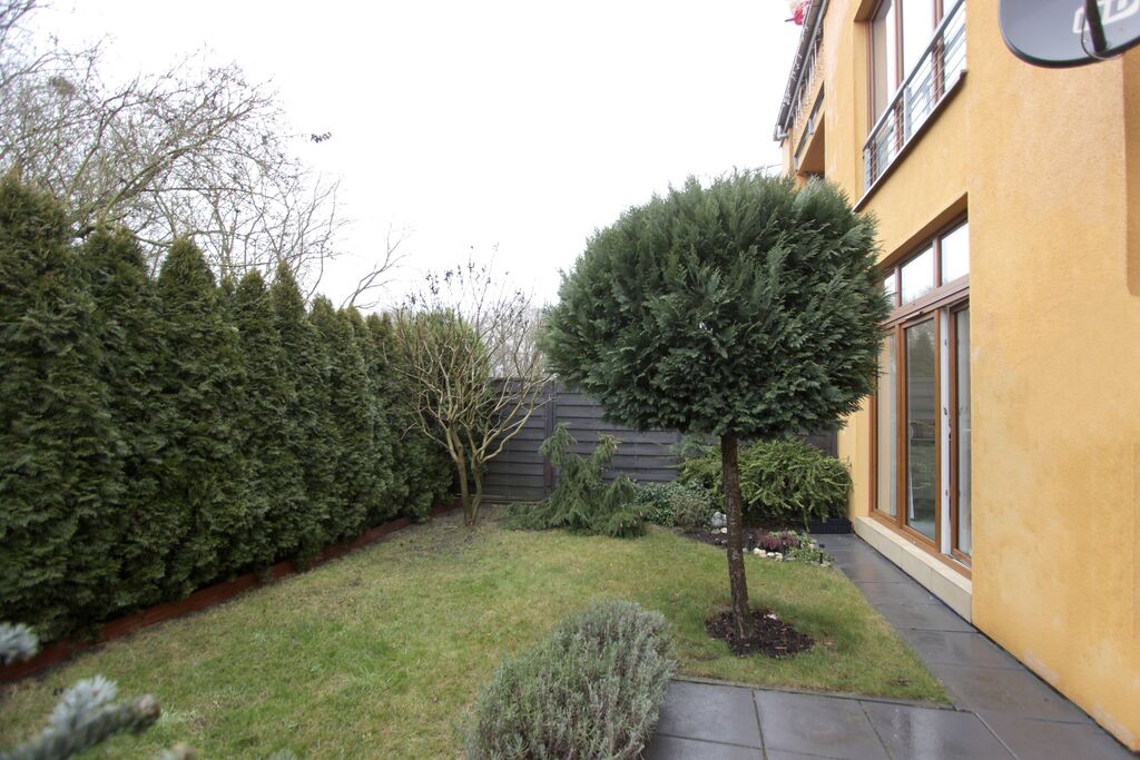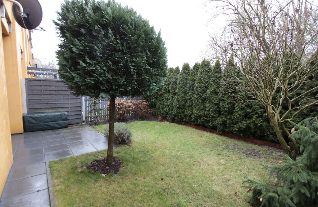 Mieszkanie bardzo doświetlone ze względu na nietypowe okna tarasowe, wyjście na ogródek zarówno z sypialni jak i salonu.