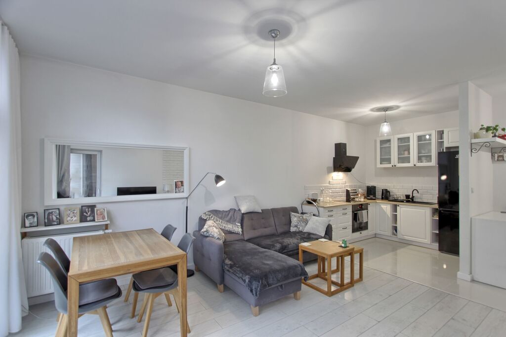 Lokal mieszkalny o powierzchni 44m2 znajduje się na parterze nowoczesnego budynku, posiada urokliwy ogródek wielkości 50m2 od strony południowej.