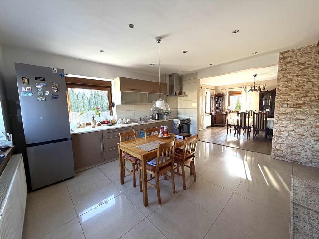 Na sprzedaż zadbany, funkcjonalny dom wolnostojący, położony na przestronnej, pięknie zagospodarowanej działce o powierzchni ok. 70 arów, w spokojnej i zielonej okolicy. To miejsce stworzone dla osób, które cenią przestrzeń, prywatność i komfort codziennego życia, a jednocześnie chcą mieć wszystko dobrze zorganizowane i gotowe do zamieszkania. Otoczenie zieleni, duża działka oraz starannie zagospodarowany teren sprawiają, że nieruchomość daje realne poczucie swobody i oddechu od codziennego zgiełku. Dom jest jasny, słoneczny i bardzo funkcjonalny, zaprojektowany z myślą o wygodnym użytkowaniu. Na parterze znajduje się: