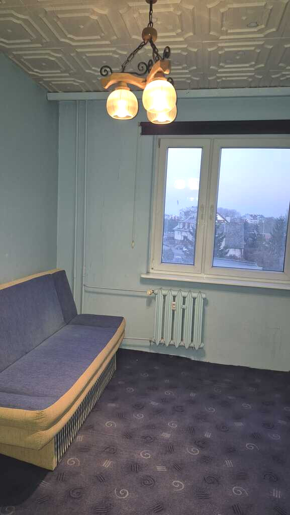 Mieszkanie 2 pok położone na II piętrze w ocieplonym bloku z dwoma windami. Pokój większy ma ok 25 m2, okna PCV, ściany w tapetach, na suficie są kasetony. Mniejszy pokój ma ok 8 m2. Kuchnia z oknem, meble, kafle starszego typu. Łazienka z wanną, umywalką. WC osobno. Duży , wygodny przedpokój. Czynsz wynosi 450 zł . Obecnie nie ma zużycia wody. Mieszkanie jest bardzo ciepłe, położenie idealne dla rodzin. Duże centrum handlowe, urząd , szkoły, przedszkola, komunikacja bardzo dobra. Mieszkanie jest do szybkiego wydania