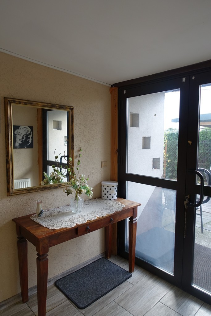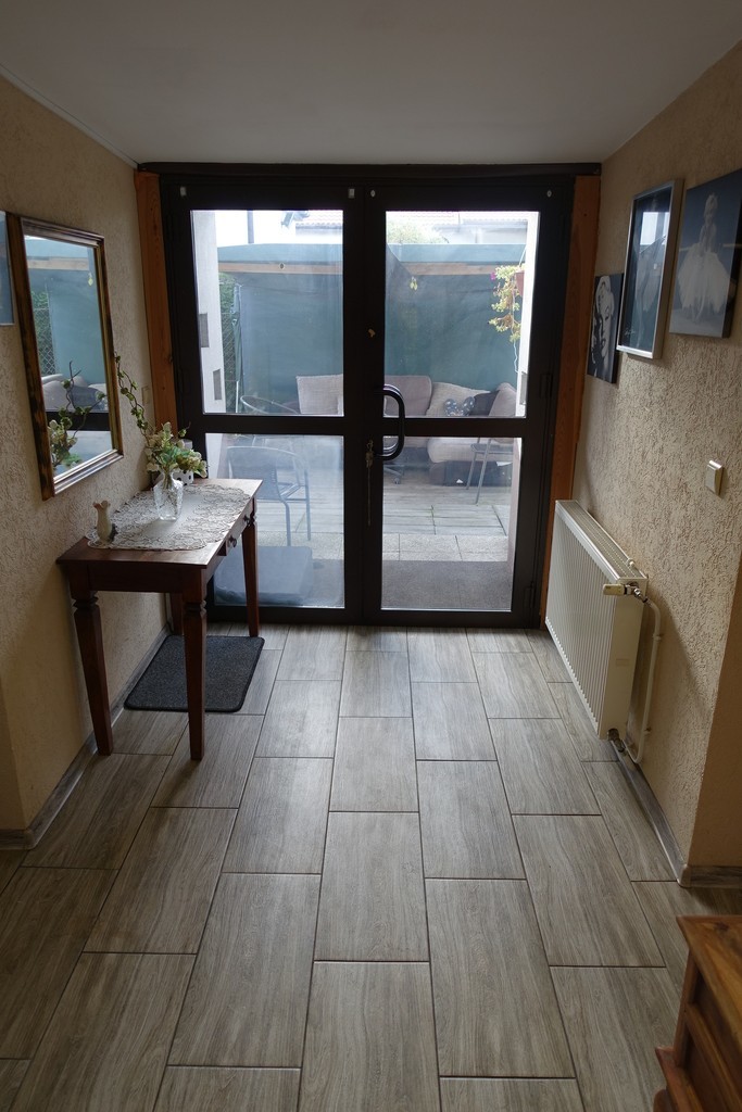 PARTER DOMU: kuchnia 10,15 m2, pokój dzienny 10,3 m2, łazienka 6,95 m2, korytarz wejściowy ok. 12 m2 i przedpokój 12 m2.