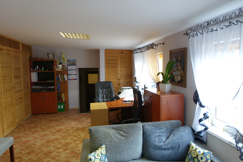 W skład powierzchni biurowej wchodzi pokój 25 m2, korytarz 8,3 m2, pomieszczenia socjalne kuchnia z łazienką ok. 15 m2.