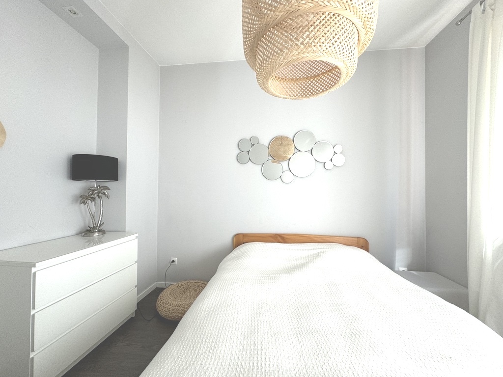 Dwie sypialnie to ustawne pomieszczenia, w których znajduje się podwójne łóżko, komody oraz tapczanik dla małych gości domu.