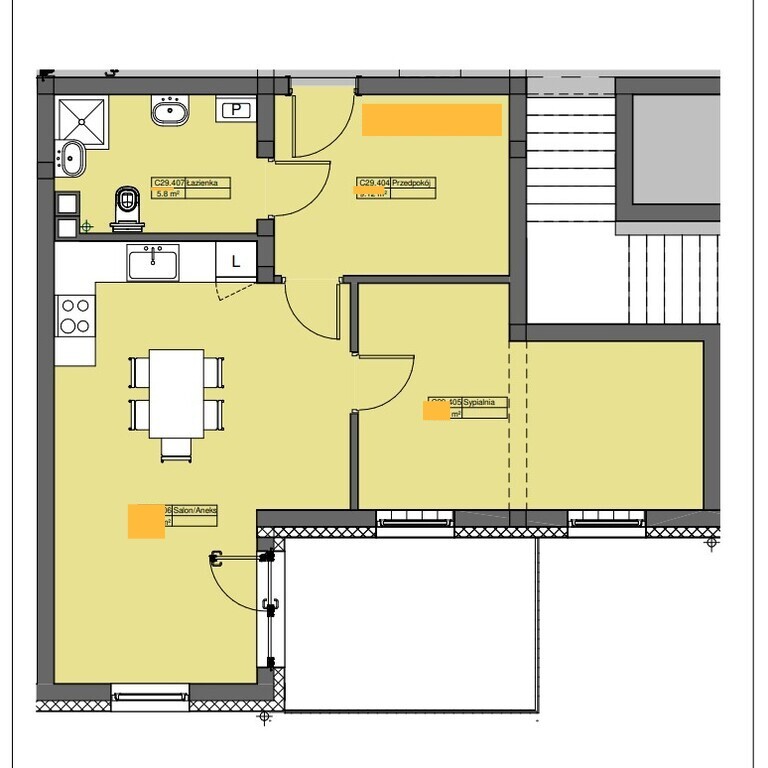 Lokal mieszkalny składa się z następujących pomieszczeń (rzut poglądowy przy ofercie):