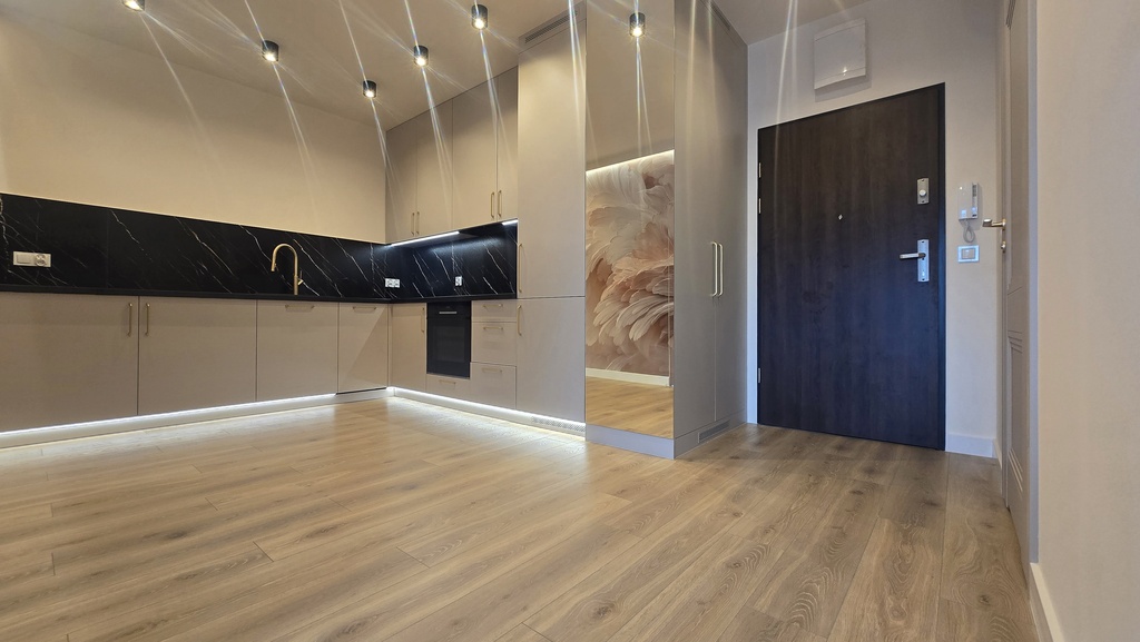 Apartament zaaranżowany i wykończony przez właścicieli z dbałością o każdy szczegół. Nieruchomość łączy w sobie komfort, wygodę i funkcjonalność oraz wysoką jakość materiałów wykończeniowych i wyselekcjonowaną kolorystykę. Podłogi wyłożone są wysokiej jakości panelami. Ściany gładkie, malowane ozdobione przepiękną tapetą. Aneks kuchenny zabudowany meblami na wymiar ze sprzętem AGD. Wyjątkowa łazienka z prysznicem i zabudową w eleganckich kaflach z modną armaturą i oświetleniem. W korytarzu pojemna szafa w zabudowie. Lokal gotowy do zamieszkania.