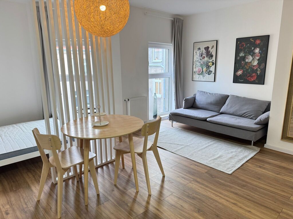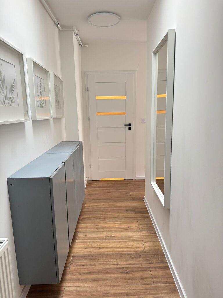 - Wyposażenie: Mieszkanie jest w pełni umeblowane i wyposażone w nowoczesny sprzęt AGD.