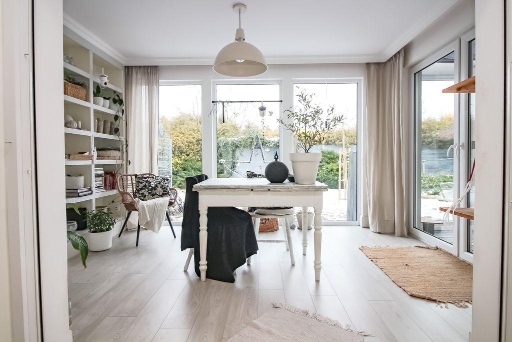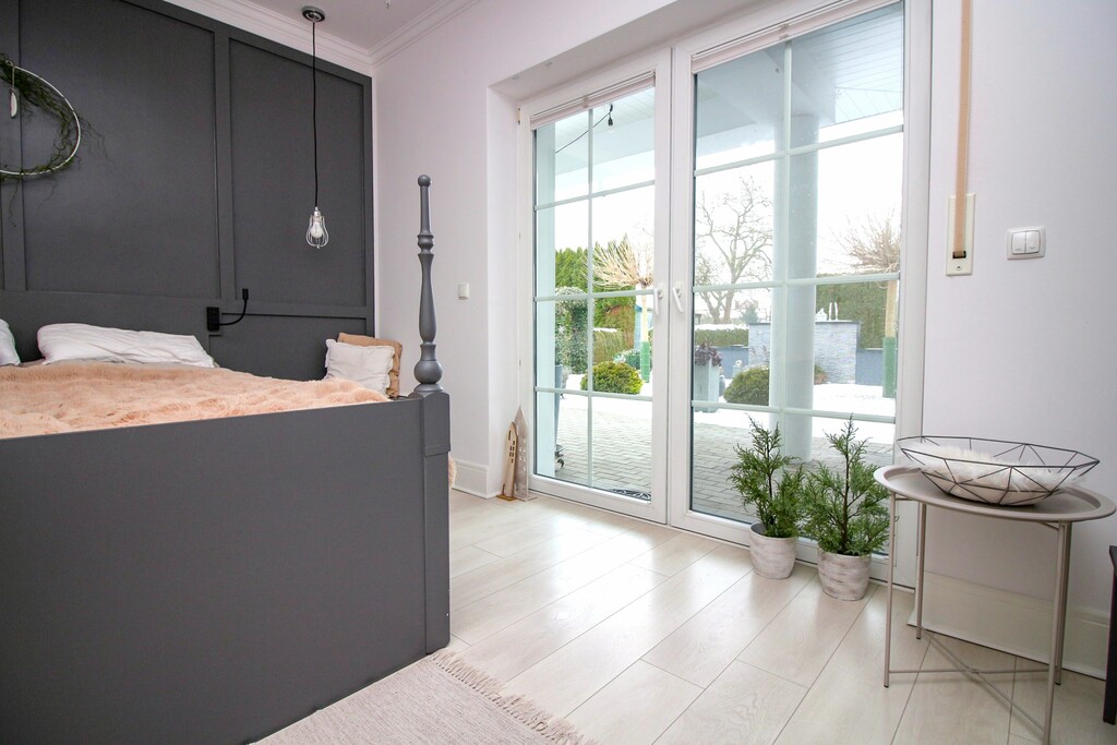 - w centralnym punkcie salonu znajduje się przestronne wejście na ogród zimowy,