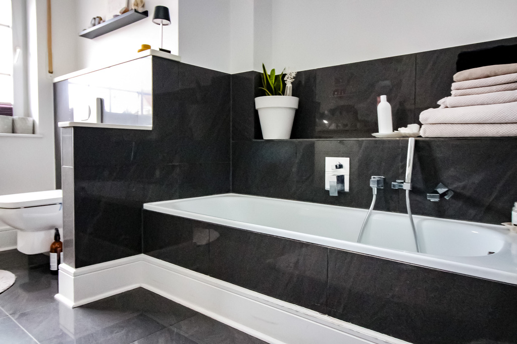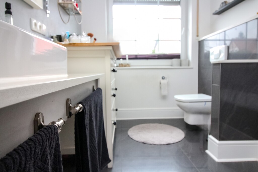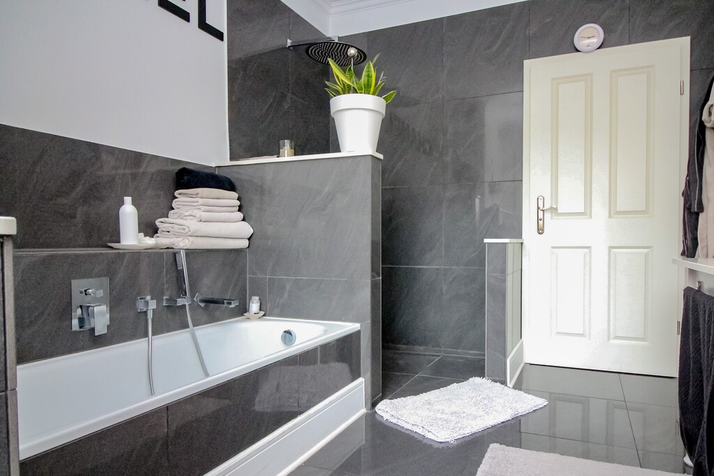 - duża łazienka z wc, wanną i prysznicem podłogowym