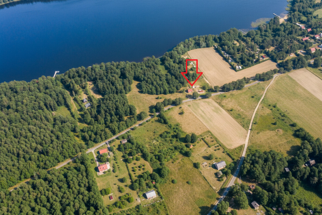 Prywatność 2. linii: To idealny układ. Do jeziora masz kilkadziesiąt metrów, ale odgradza Cię jedna linia zabudowy. Dzięki temu cieszysz się bliskością wody bez szumu plażowiczów pod oknem.
