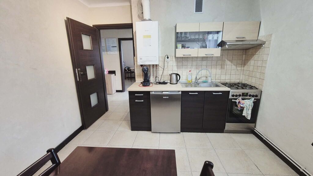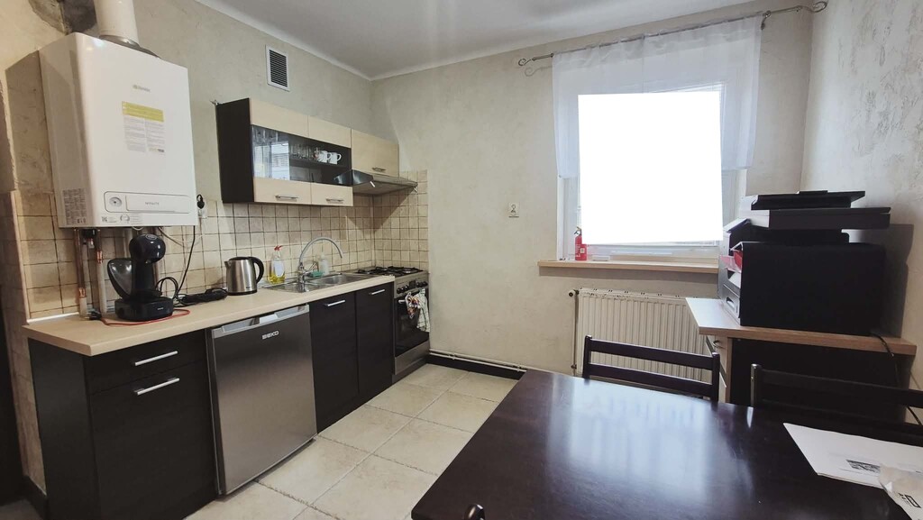 Ściany w pokojach wykończone zostały tynkiem strukturalnym, na podłogach położono trwałą terakotę, a okna PCV zapewniają dobrą izolację termiczną i akustyczną. Kuchnia wyposażona jest w meble wraz ze sprzętem AGD. Ogrzewanie oraz ciepła woda pochodzą z nowego pieca gazowego, co pozwala na indywidualne zarządzanie kosztami. Dużym atutem nieruchomości są piwnice o łącznej powierzchni 23,18 m², które zapewniają dodatkowe miejsce do przechowywania. Z dużego pokoju istnieje możliwość wykonania samodzielnego wyjścia bezpośrednio na ogródek – to doskonała opcja dla osób marzących o własnej zielonej przestrzeni do wypoczynku. Mieszkanie obecnie nie posiada balkonu (został on włączony do powierzchni pokoju), jednak istnieje możliwość ponownego jego wydzielenia. W pobliżu znajdują się liczne sklepy, punkty usługowe oraz przystanki komunikacji miejskiej, co gwarantuje wygodę codziennego życia.