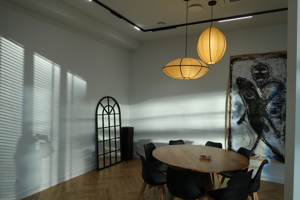 Do wspólnego korzystania mamy przestronny hol, 26,06 m2, aneks kuchenny 9,77 m2, pomieszczenie techniczne 6,42 m2, toaleta 6,03m2.