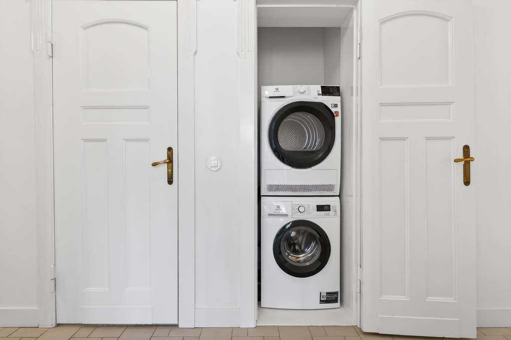 Pomieszczenie gospodarcze (0,5 m2) dodatkowy schowek umiejscowiony w korytarzu lokalu z pralką i dodatkowo suszarką dla wygody najemców!