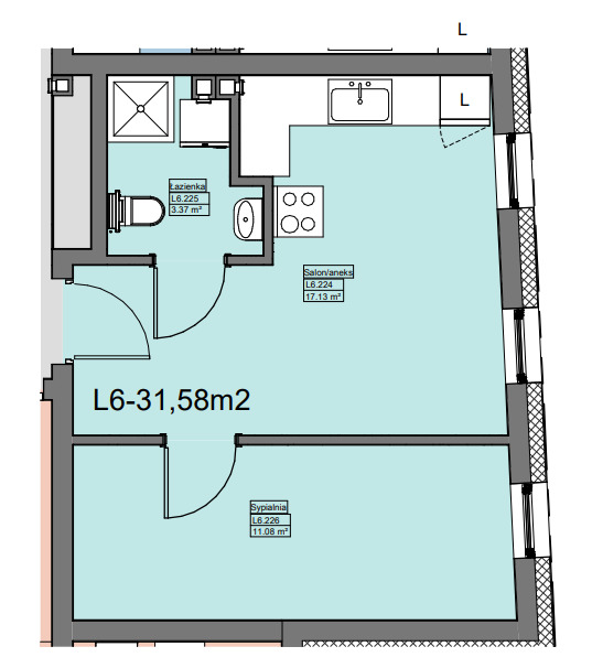 Powierzchnia: 31,58 m²
