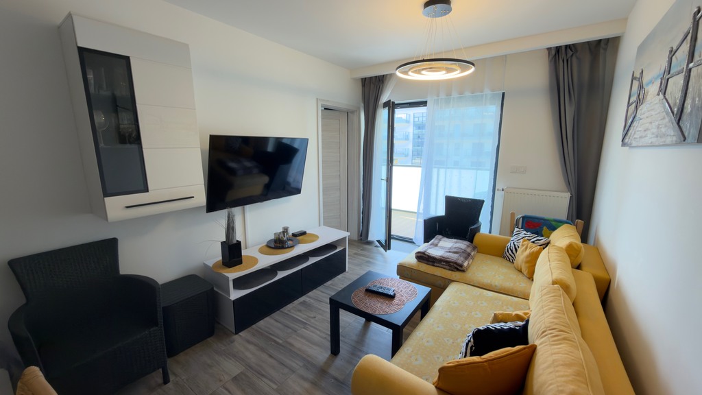 Wnętrze urządzone w nowoczesnym stylu, gotowe do zamieszkania lub wynajmu. Duże aluminiowe okna zapewniają doskonałe doświetlenie oraz trwałość i wysoką izolacyjność. Z apartamentu rozpościera się widok na morze, co czyni tę ofertę idealną zarówno jako second home, jak i inwestycję pod wynajem krótkoterminowy.