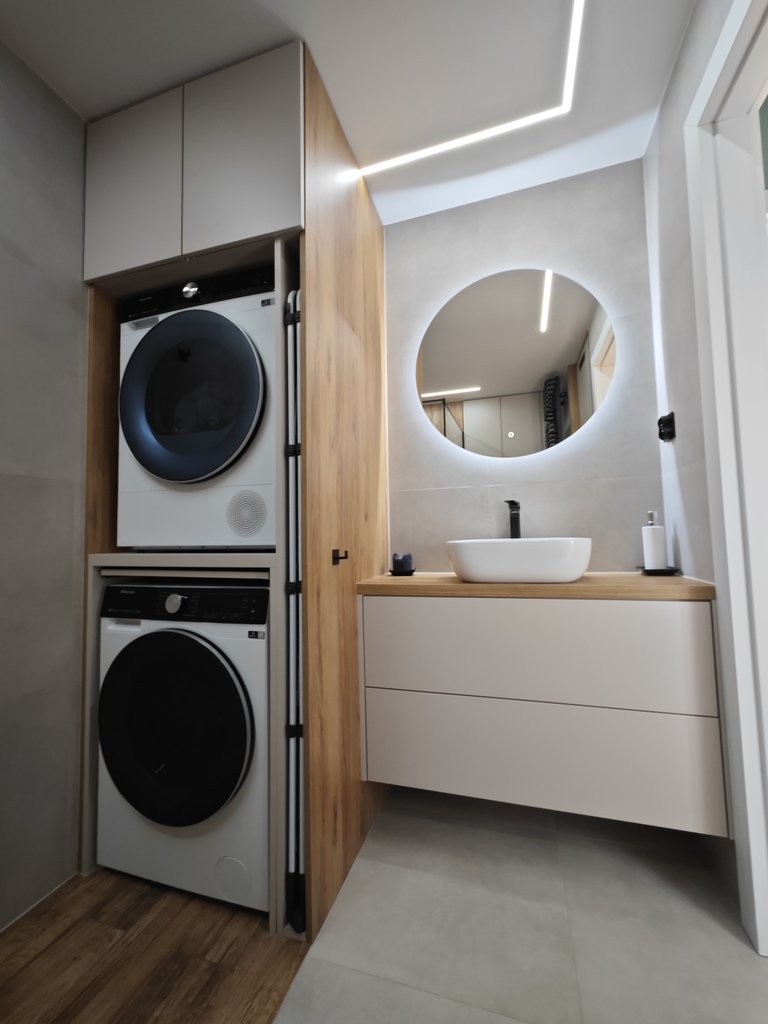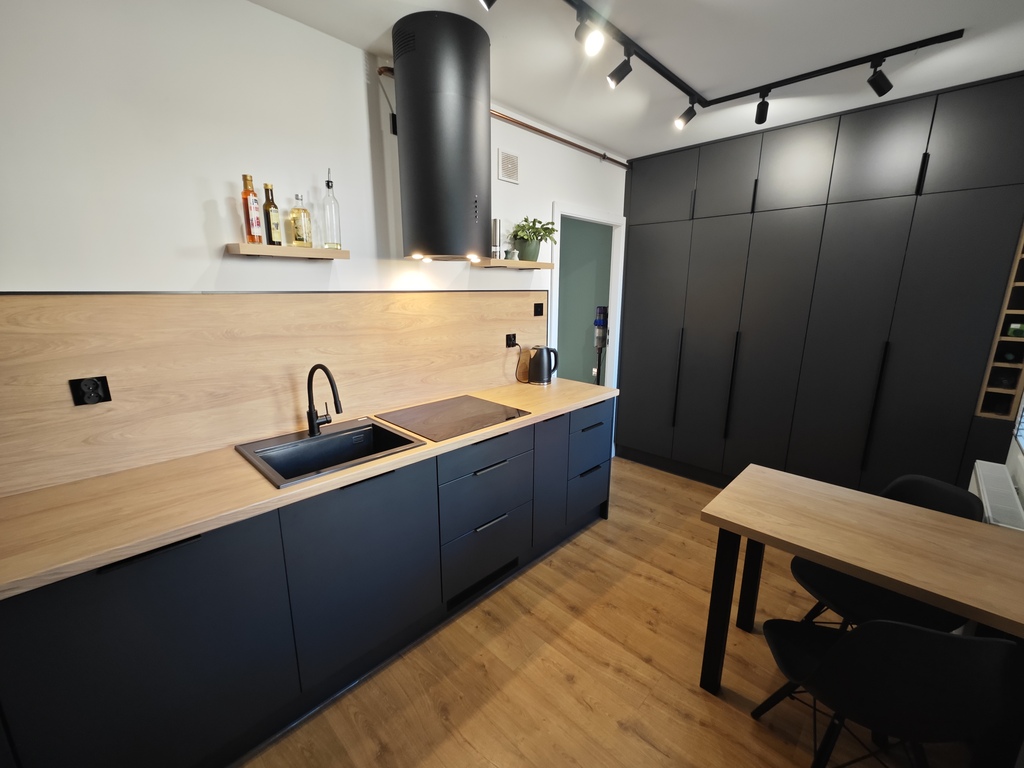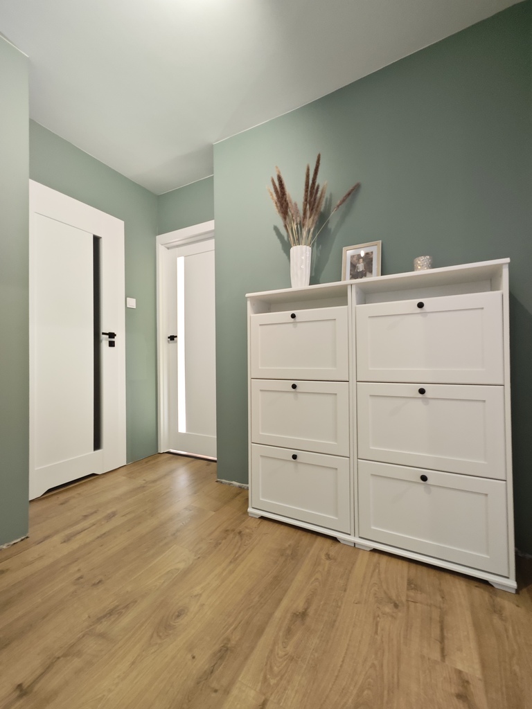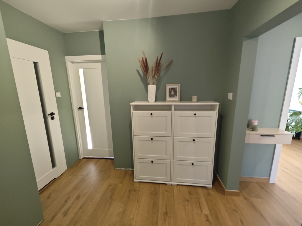 W 2025 roku położono nowe panele w salonie, kuchni i przedpokoju. Ściany w pokojach gładzone i malowane. W kuchni i łazience zostały wymienione instalacje wodno-kanalizacyjna oraz elektryczna (łącznie z podłączeniem w kuchni przewodów do indukcji). W kuchni pozostają nowoczesne meble wykonane na wymiar plus sprzęt AGD, w większości jeszcze na gwarancji (m.in. zmywarka, piekarnik, płyta indukcyjna - wszystko firmy Hisense, lodówka firmy Samsung oraz ozdobny okap). Dodatkowo w kuchni stolik i dwa krzesła oraz jedna ze ścian zabudowana po całości pojemnymi szafkami. W łazience nowoczesna glazura i terakota plus kabina prysznicowa "walk in", umywalka na blacie z szafką z dużymi szufladami, podwieszana muszla, grzejnik drabinkowy oraz zabudowane szafki. W łazience znajduje się również specjalne miejsce na pralkę i suszarkę.