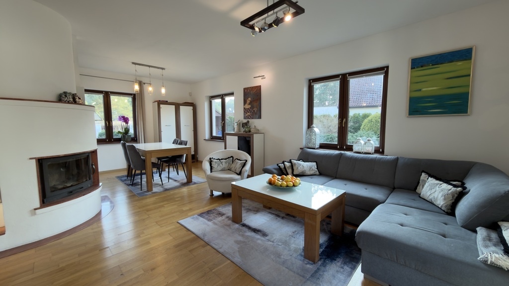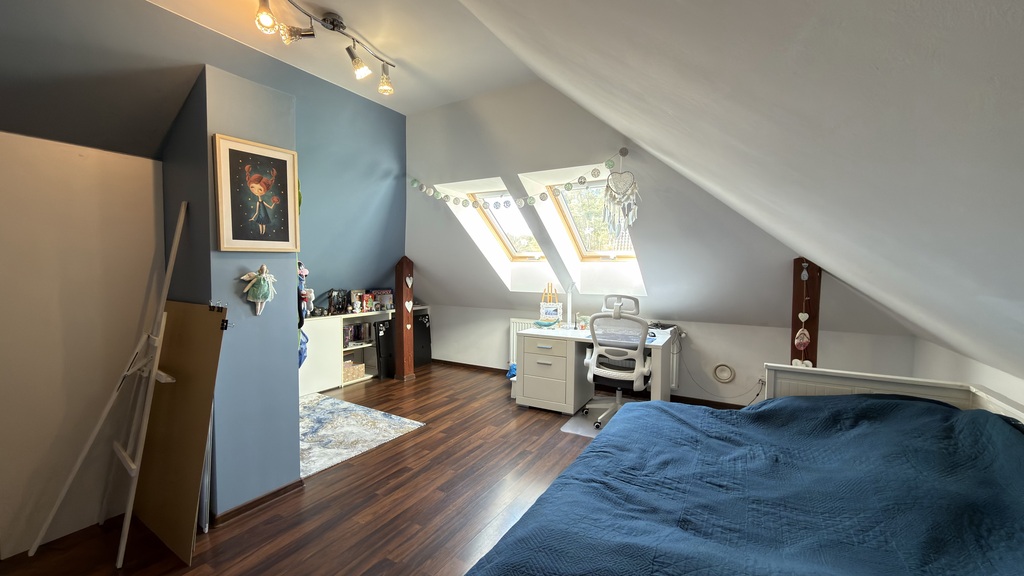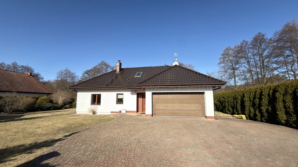 Budynek z 2009 roku, o powierzchni użytkowej 200 m2 (powierzchnia całkowita 400m2), usytuowany na działce o powierzchni 1626 m². Dom parterowy z poddaszem użytkowym i garażem dwustanowiskowym w bryle budynku.