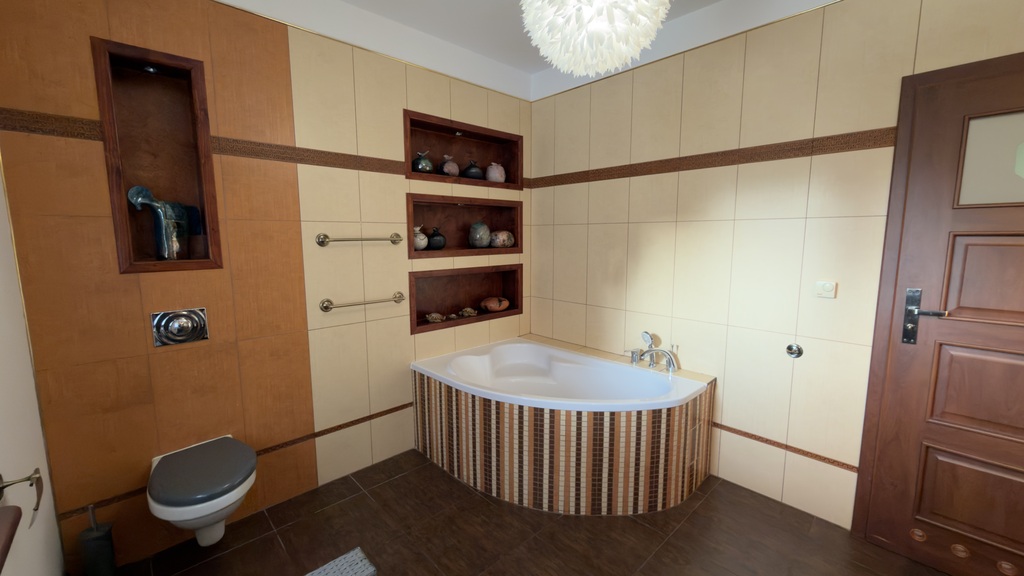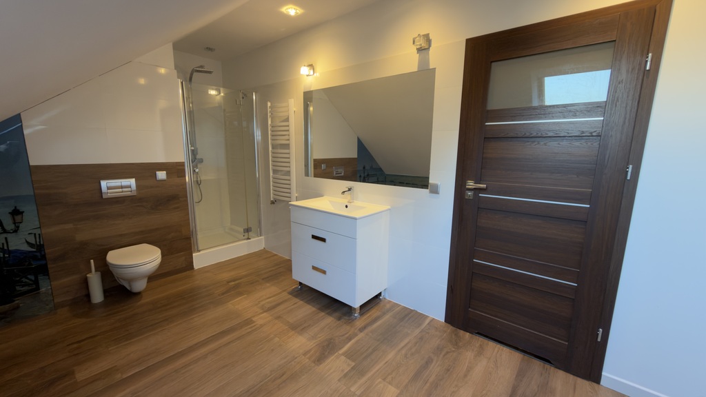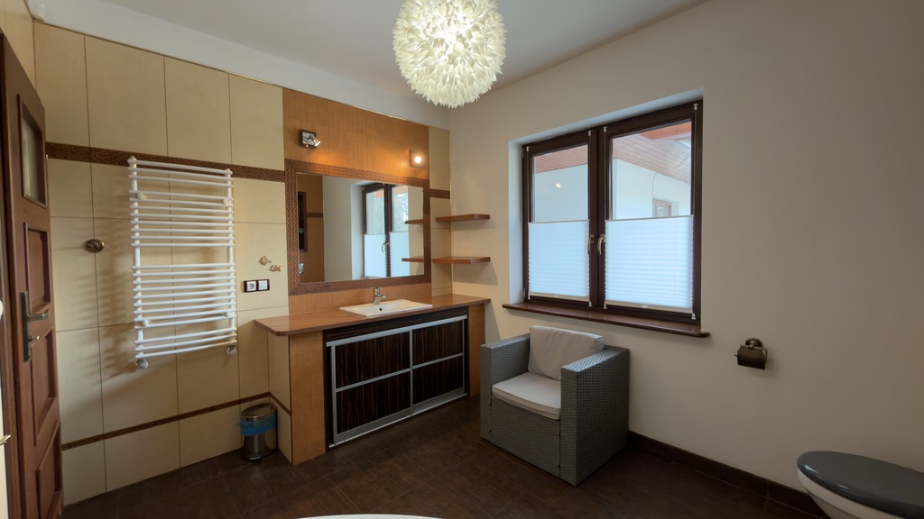 - 2 łazienki, jedna wyposażona w wannę, druga w prysznic oraz WC,
