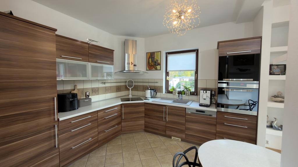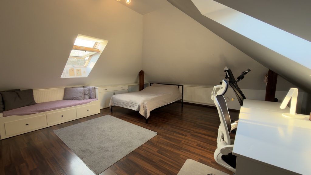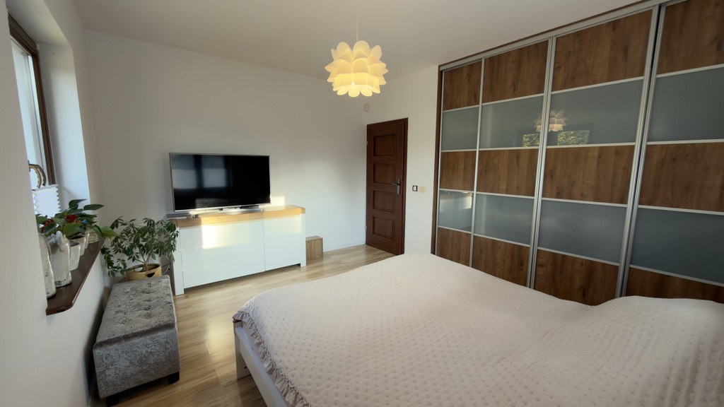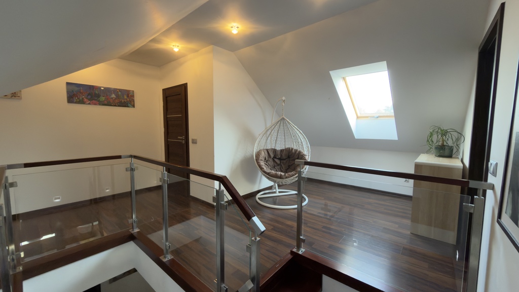 - przestronny salon połączony z otwartą kuchnią oraz wyjściem na wyjątkowo duży taras,