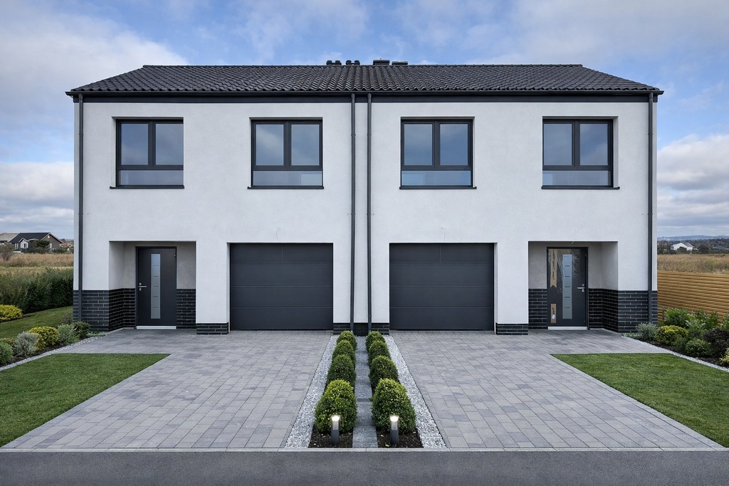 Oferowany o łącznej powierzchni użytkowej 136 m²znajduje się w dwulokalowym budynku jednorodzinnym. Przestronny salon z aneksem kuchennym na parterze oraz garaż w bryle budynku zapewniają wygodę codziennego użytkowania. Na poddaszu cztery niezależne sypialnie, łazienka oraz pomieszczenie gospodarcze tworzą funkcjonalny układ, idealny dla rodziny.