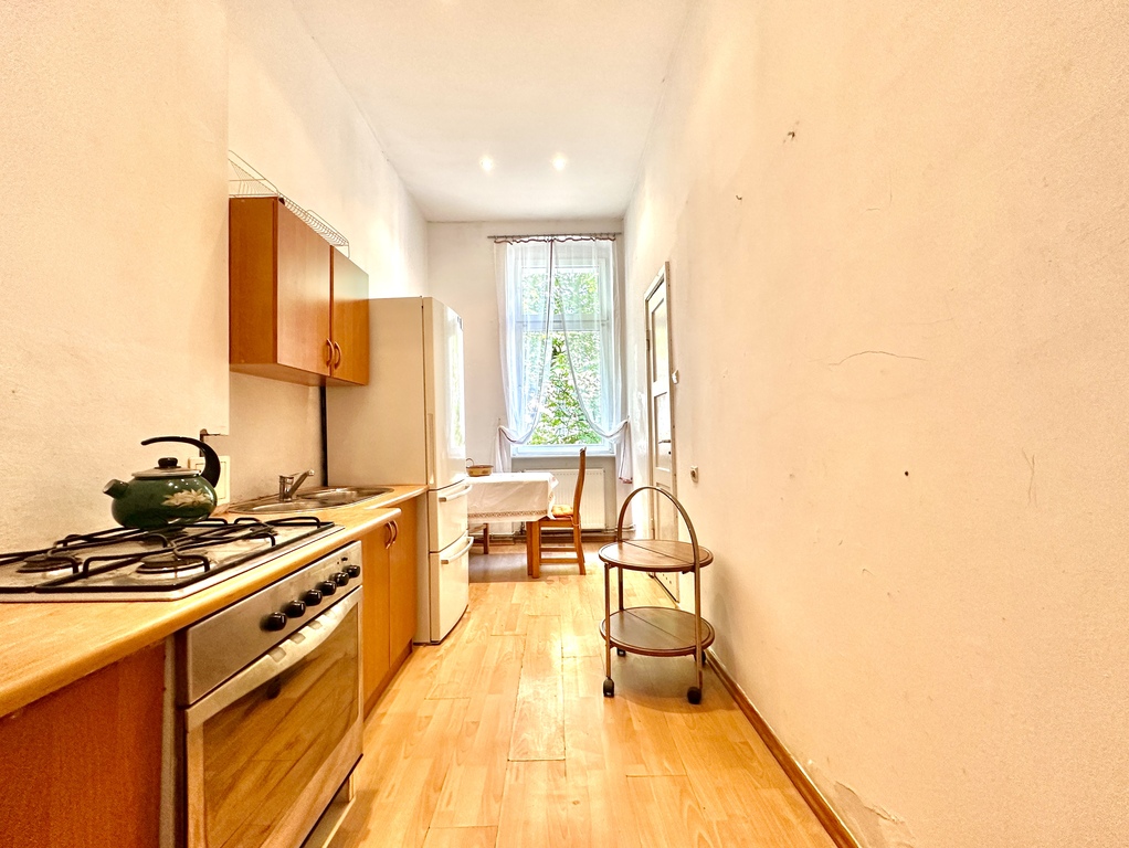 Klimatyczne 2-pokojowe mieszkanie 52 m² w odrestaurowanej kamienicy w centrum Szczecina, w pobliżu Hanzy. Do remontu, z oddzielną kuchnią i łazienką z wejściem z kuchni – układ typowy dla kamienic.