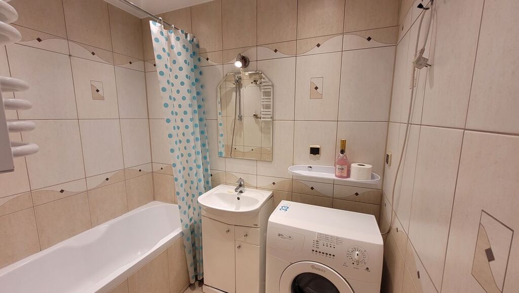 Łazienka z wanną , w glazurze i terakocie, pralka