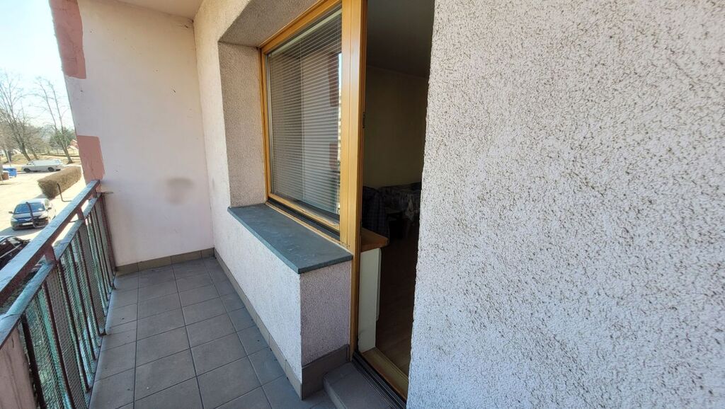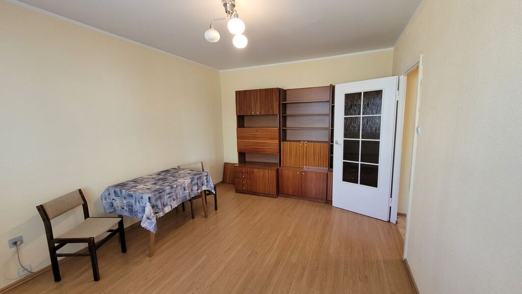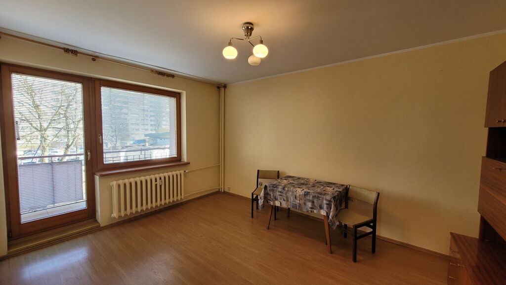 42,8 m2, rozkładowe, na podłogach w pokojach panele, Większy pokój z balkonem.