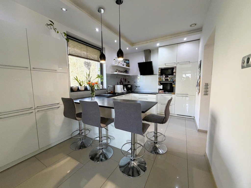 Na sprzedaż wyjątkowy dom wolno stojący, który łączy w sobie funkcjonalność, komfort oraz niepowtarzalny, przytulny klimat. Powierzchnia użytkowa z księgi wieczystej wynosi 229,77m2. Wybudowany w 2014 roku z porothermu docieplony 15cm styropianem grafitowym.