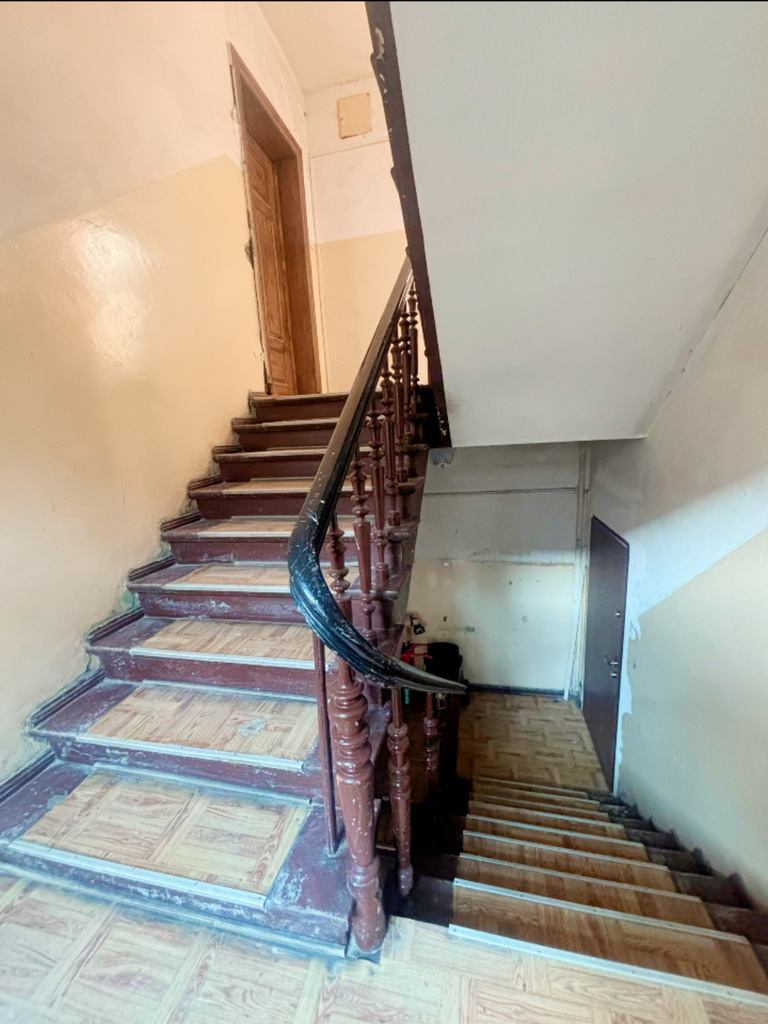 Podwórko przestronne, zamknięte. Zadbana kamienicwa frontowa i jej klatka schodowa.