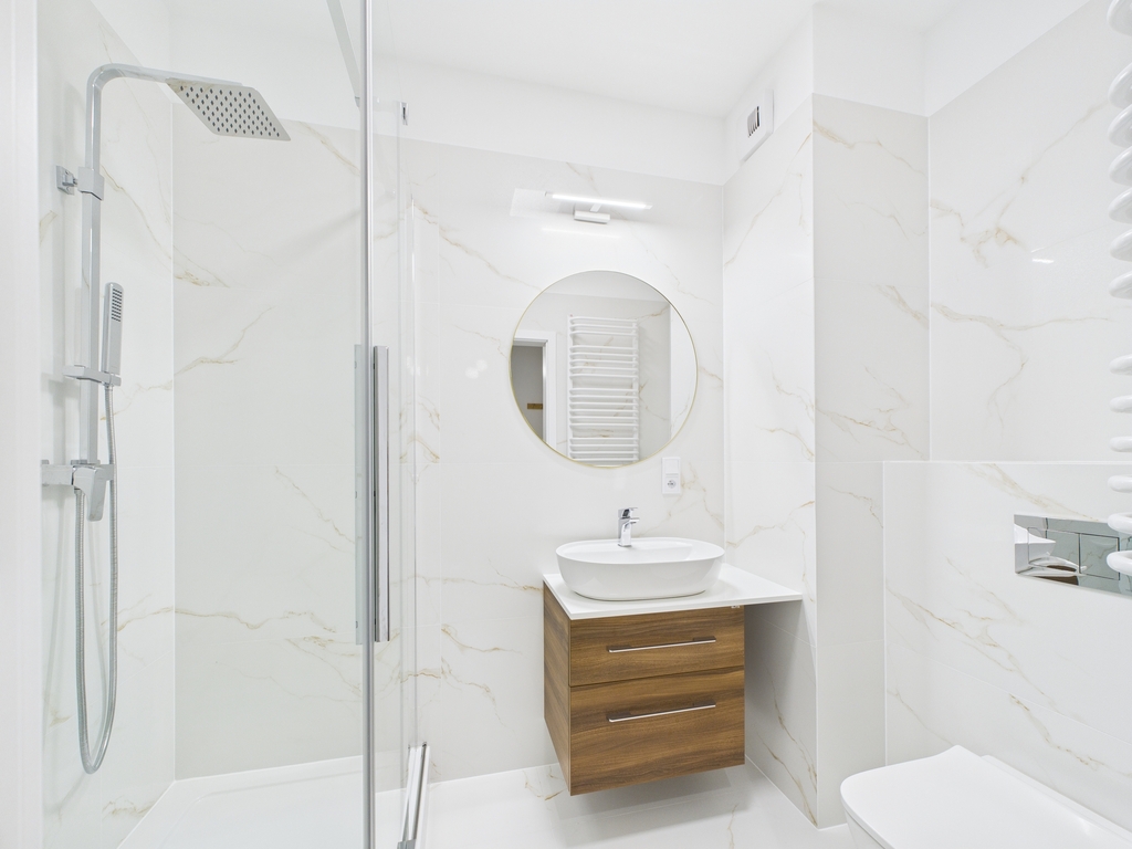 Apartament wykończony w eleganckim i nowoczesnym stylu - z gustownie dobranych i wysokiej klasy materiałów.