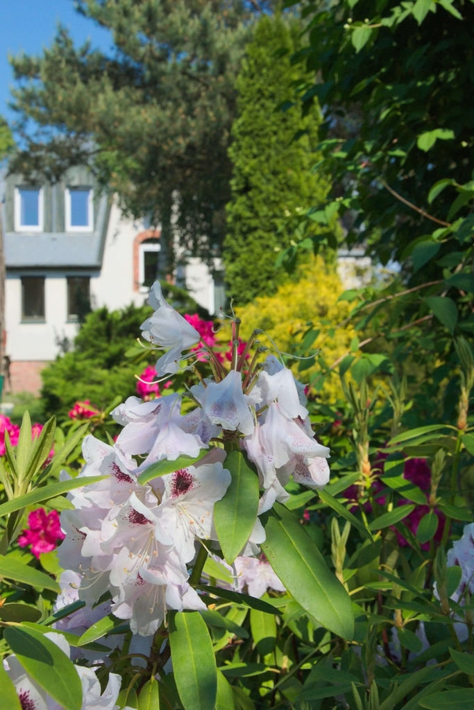 W ogrodzie znajdziemy liczne nasadzenia, garaż i pomieszczenie gospodarcze.