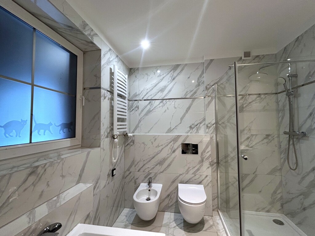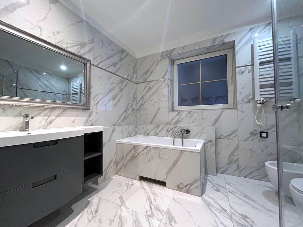 - łazienka (7,4 m2) z wanną kabina prysznicową toaletą; osobne WC