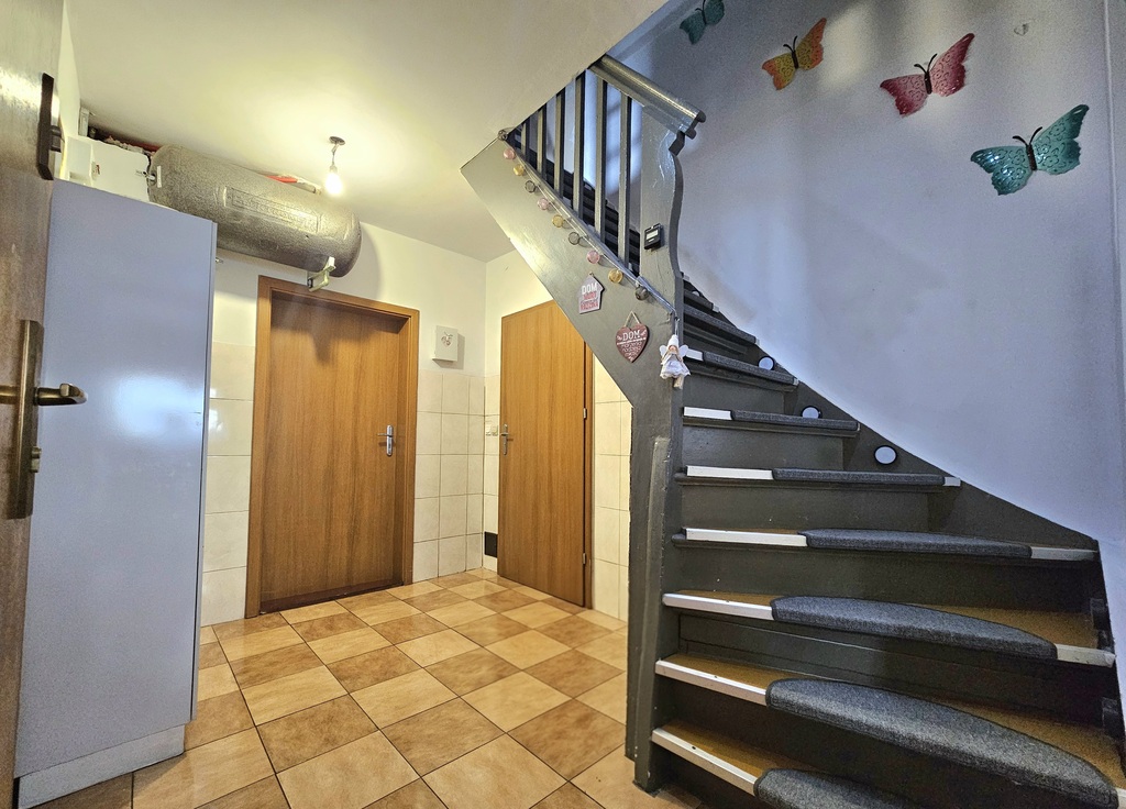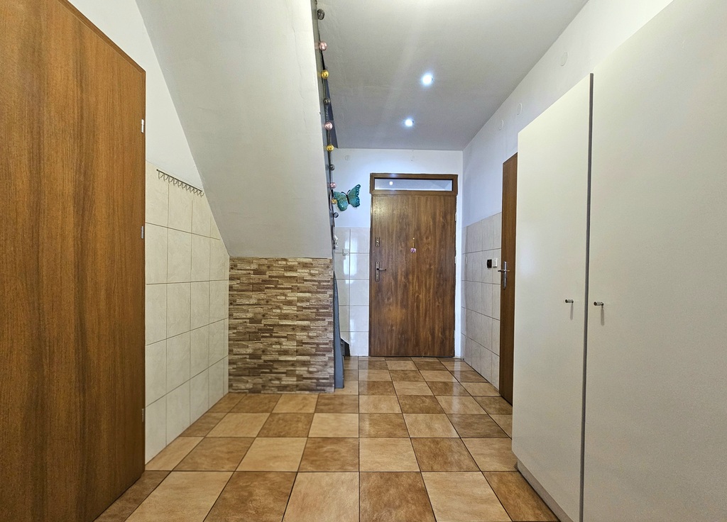 przedpokój – ok. 7,60 m², terakota z ogrzewaniem podłogowym, ściany częściowo glazura