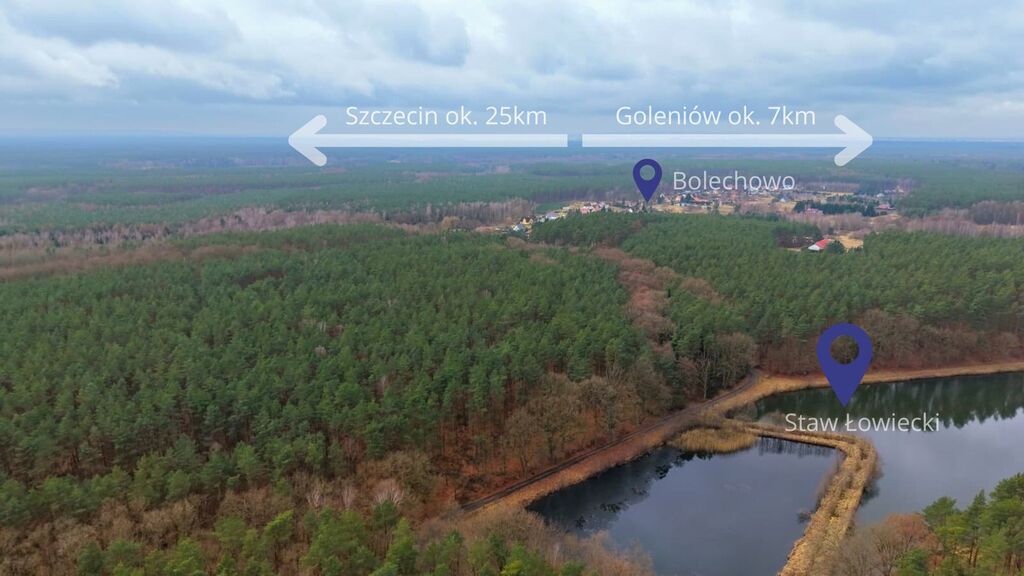 Na sprzedaż dom wolnostojący z 1930 roku, położony w Bolechowie gminie Goleniów, na działce 1057 m², z budynkiem gospodarczym i 3 garażami blaszanymi. Nieruchomość położona bezpośrednio przy lesie, idealna dla osób szukających spokoju i kontaktu z naturą, a jednocześnie w dobrym punkcie komunikacyjnym: