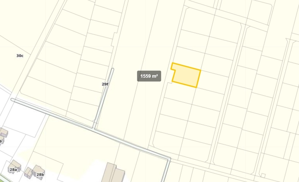 Kształt działki - prostokąt. Droga dojazdowa nieutwardzona.