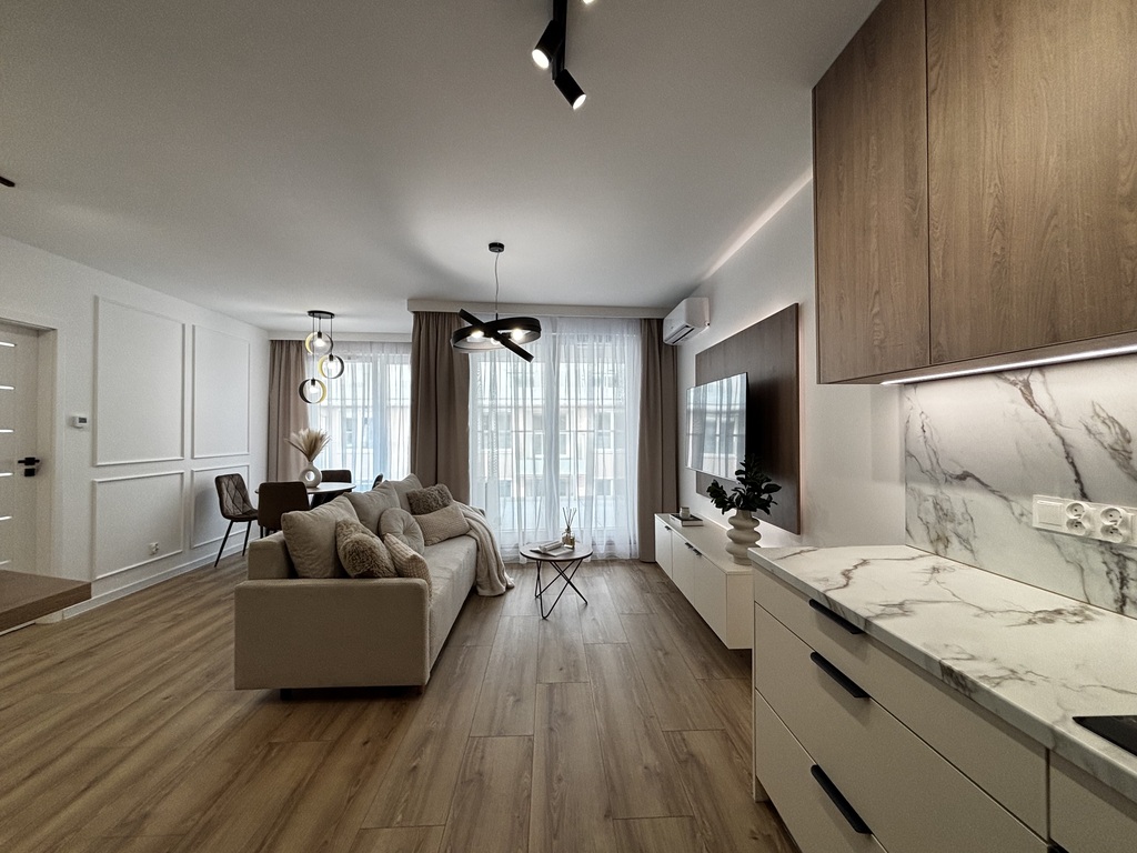 Mieszkanie zostało wykończone w wysokim standardzie i jest w pełni wyposażone – gotowe do zamieszkania od zaraz.