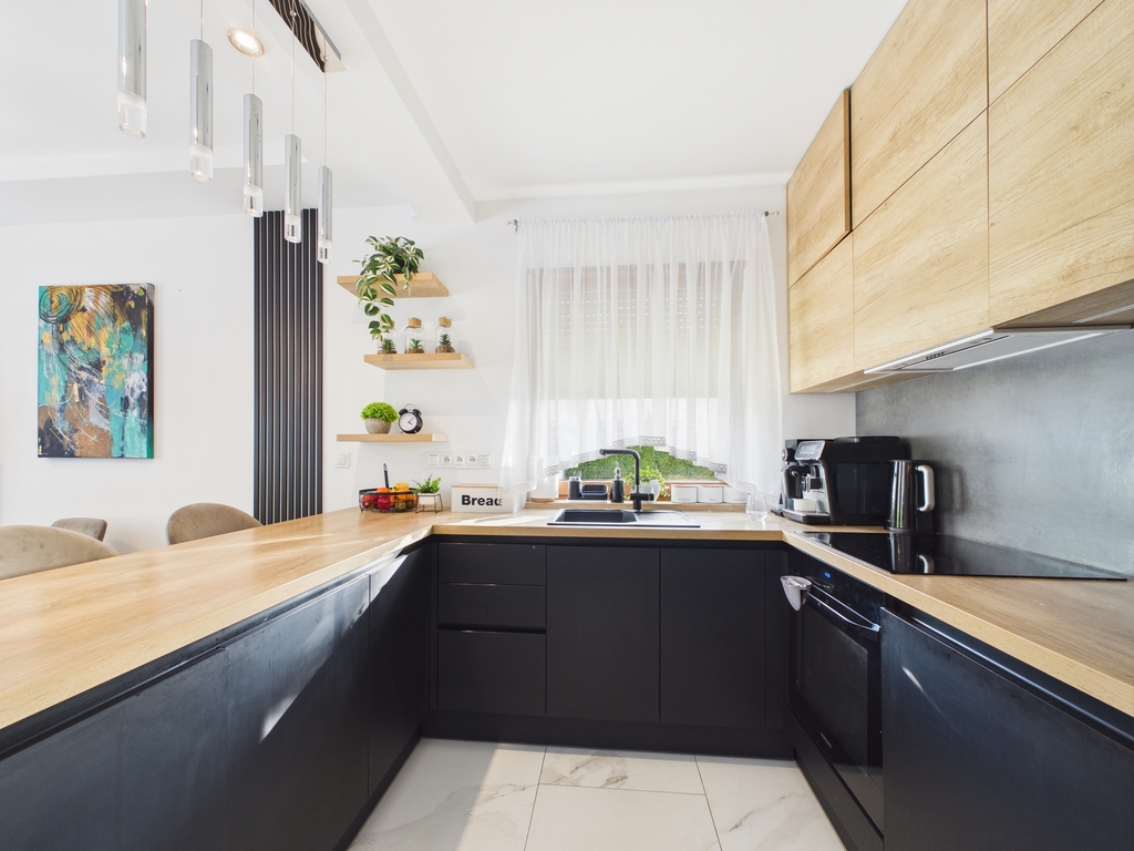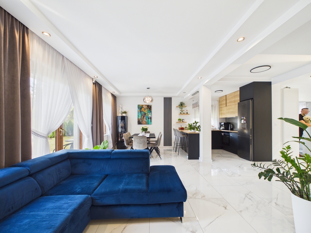 - Jasny, przestronny salon z jadalnią, aneksem kuchennym z bezpośrednim wyjściem na taras